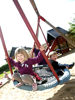 Vi har en stor härlig utegård med tillgång till olika lekredskap där barnen kan träna sin motorik och fantasi genom att cykla, gräva, klättra, spela bollspel, leka lekar och gunga.