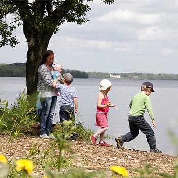 Vid Ringsjöns strand. Marie tillsammans med några barn en